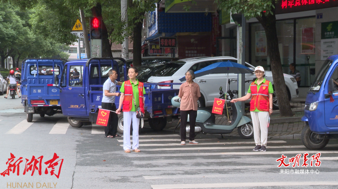 6月9日一大早,在通往耒阳二中考点的执勤路口,几名身穿红马甲,头戴小红帽,手持“文明交通 安全出行”小红旗的老干部志愿者正在考点附近和沿江路开展文明交通劝导,提醒考点周边道路车辆降噪音,并为有出行困难的考生积极提供力所能及的帮助。