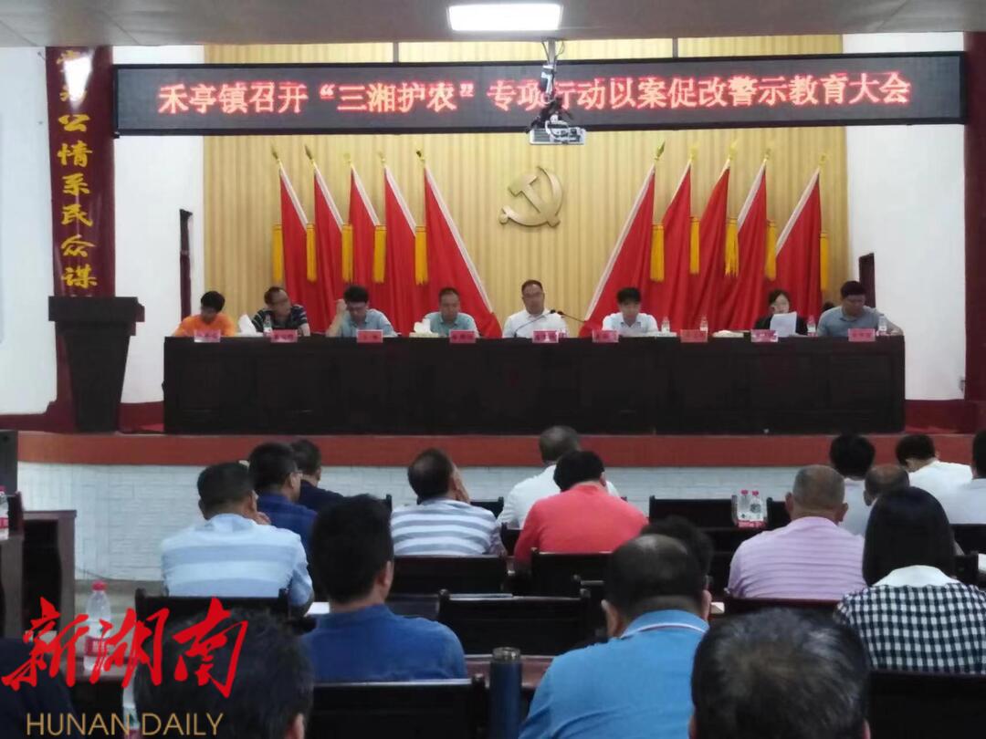 湖南日报 新湖南客户端6月9日讯(通讯员 谭梦璇 廖芷谊 )“大家要以今天通报的6起乡村振兴领域腐败典型案例为戒,切实做到以案促改、以案正风,坚决杜绝损害群众利益、侵吞集体资产的违纪违法行为。”近日,宁远县禾亭镇召开“三湘护农”专项行动警示教育大会,持续推动“三湘护农”专项整治行动走深走实。