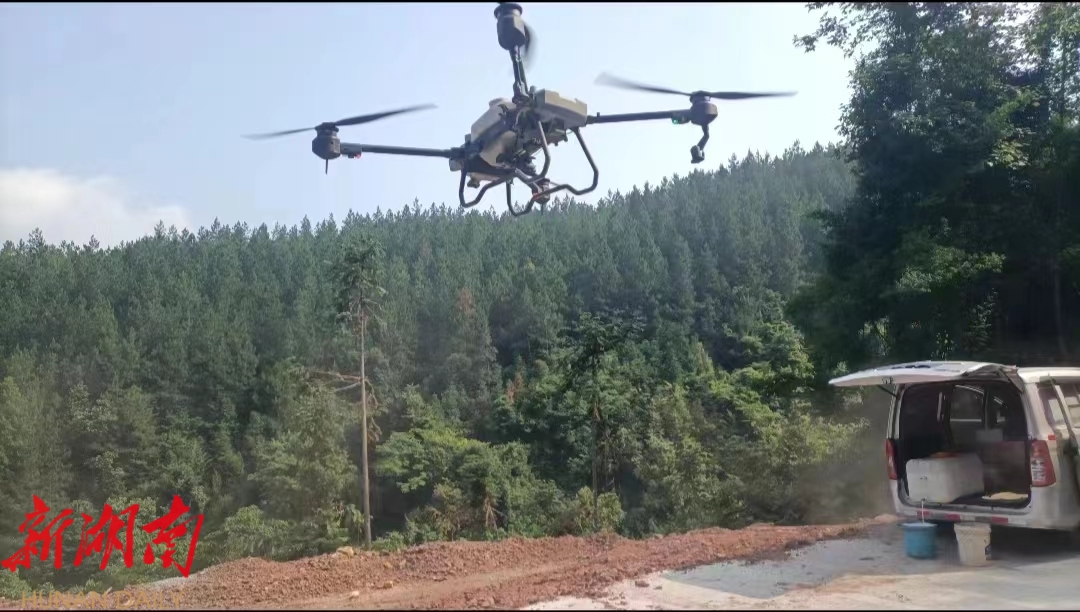 湖南日报 新湖南客户端6月9日讯(通讯员 罗斌 柏益慧 肖益婷 )近日,宁远县林业局在雾云山林场指导工作人员用无人机喷施无公害药剂,为600亩松林进行马尾松毛虫防治。