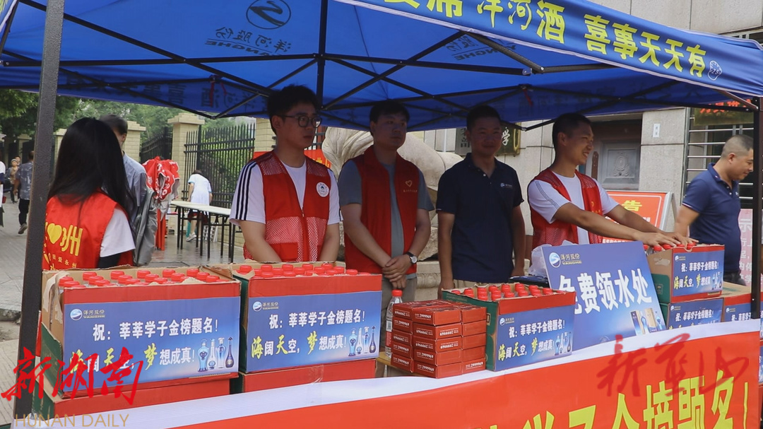 考场外,夏日炎炎,蓝山县二中的新老大门整齐地摆放着数个帐篷和桌椅,一句句为考生加油鼓劲的话语充满了活力,为了更好地助力考生考试,志愿者服务站内还配备了口罩、水、纸巾、扇子等物资,全部免费供学生和送考家长使用,让大家安心参考。