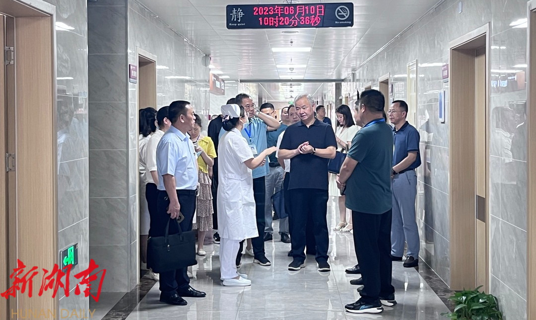 新洞口客户端6月10号讯 (记者:刘力渔 通讯员:许丽媛) 6月10日,副市长蒋伟率市卫健委、市医保局等部门负责人到洞口县中医医院调研指导DIP付费、中医药特色发展、人才队伍建设等工作。市医疗保障局局长唐远伟、副县长肖黎明参加。