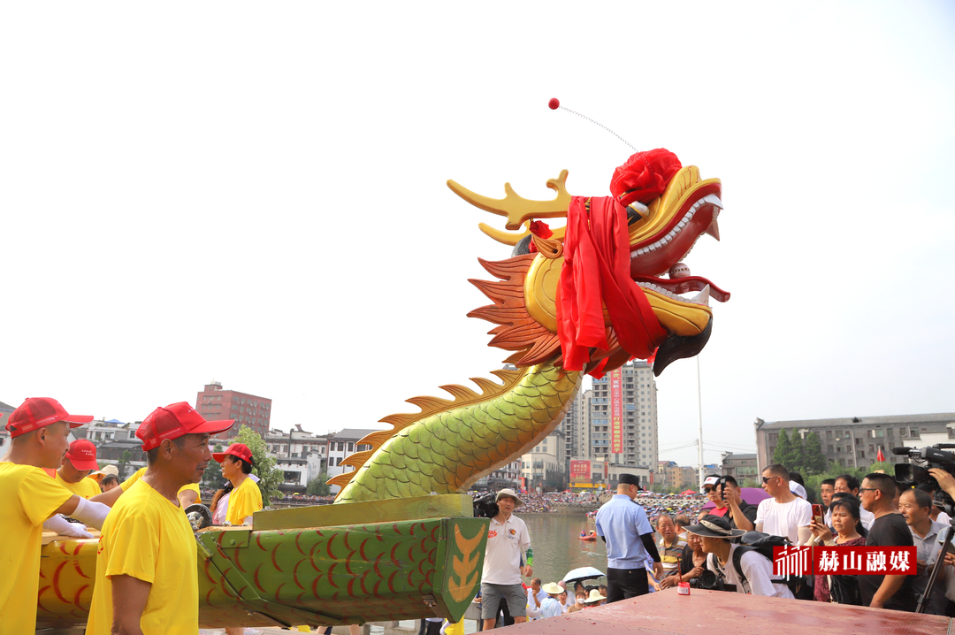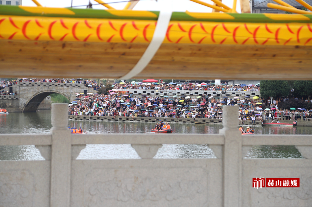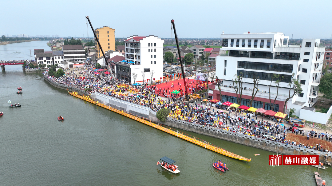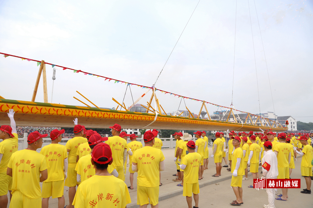 6月12日上午,2023年“山乡新巨变 多彩新赫山”兰溪双桡龙舟表演赛举行“百米双桡龙舟”登江仪式。这条“百米双桡龙舟”由兰溪镇北岸新村精心打造而成,龙舟全长99.9米、宽1.88米,有106个间仓,可乘坐420名划手。