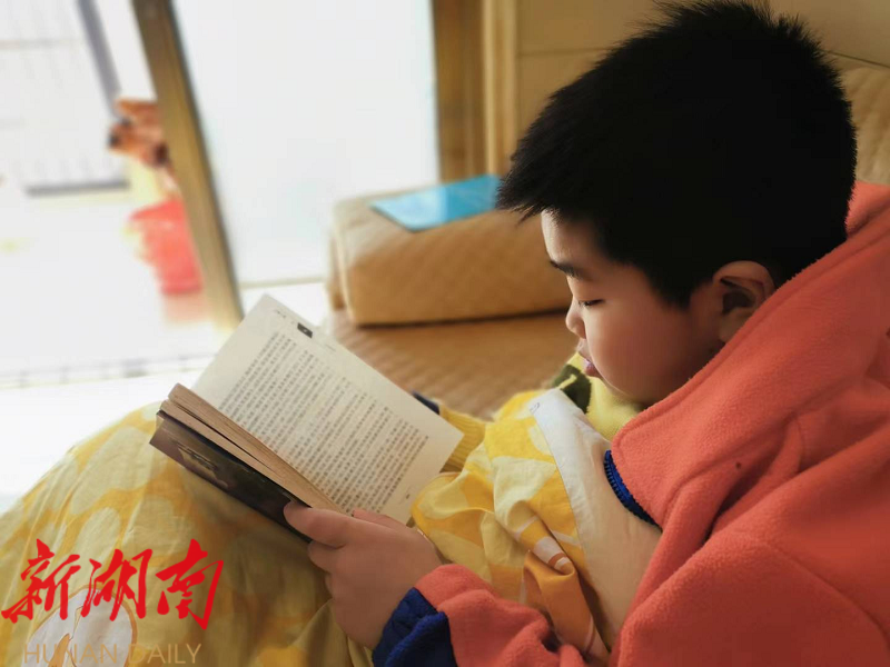 进入初中以后,随着学业功课的增加,属于小朋友的阅读时间明显减少了,可他也是尽量每天早点写完作业,睡前要翻一翻他最爱的《史记》《明朝那些事儿》和《三体》等。