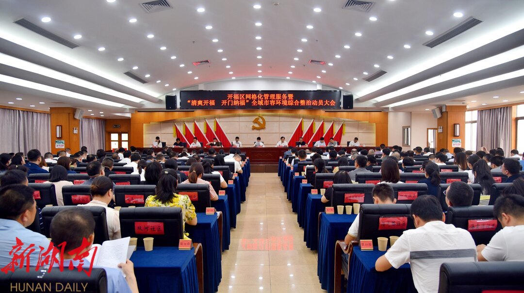 湖南日报·新湖南客户端6月12日讯(记者 荣庭芳)今天上午,长沙市开福区召开网格化管理服务暨“清爽开福 开门纳福”全域市容环境综合整治动员大会。区委书记罗玉环出席并讲话,区委副书记、区长高伟主持会议。区四大家班子成员,区属各部门、各街道党政主要负责人参加。