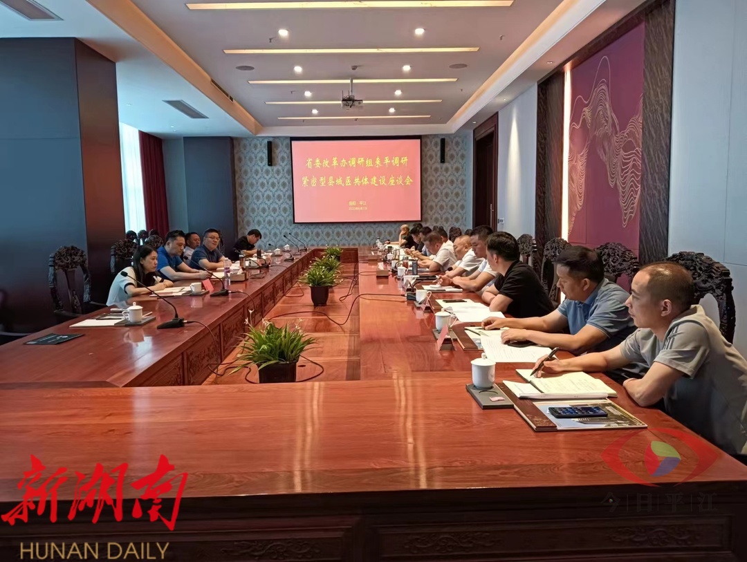 在下午召开的全县紧密型县域医共体建设座谈会上,调研组听取了我县医共体建设有关工作情况汇报。通过实地察看、听取汇报,调研组对我县五年来走过的医共体建设探索实践之路给予充分肯定。调研组认为,我县承担国家紧密型县域医共体建设试点重任,始终坚持党政主导、因地制宜, 措施稳妥有力,改革成效初现,第五人民医院总医院牵头医院与成员单位实现了人财物一体化管理,基本达到国家紧密型县域医共体建设试点要求,其中糖尿病医防融合、三级签约服务分级诊疗制度等改革举措具有示范意义,老百姓获得感明显提升,为解决群众就近就医、小病不出乡、大病不出县提供了“平江经验”。调研组对我县医共体建设存在的短板、弱项提出了指导性意见,指出县域医共体建设是实施乡村振兴战略、促进人才向基层流动和实现城乡融合发展的重要举措,也是深化县域综合医改的重要抓手,更是解决群众“看病难,看病贵”问题的重要方法,鼓励我县继续探索另外 两 个医共体的管理运行机制及村医管理、县乡村人才队伍建设、 DIP支付方式全面实施后的医保支付制度 ,以平江试点之“答”回应国家试点之“问”。