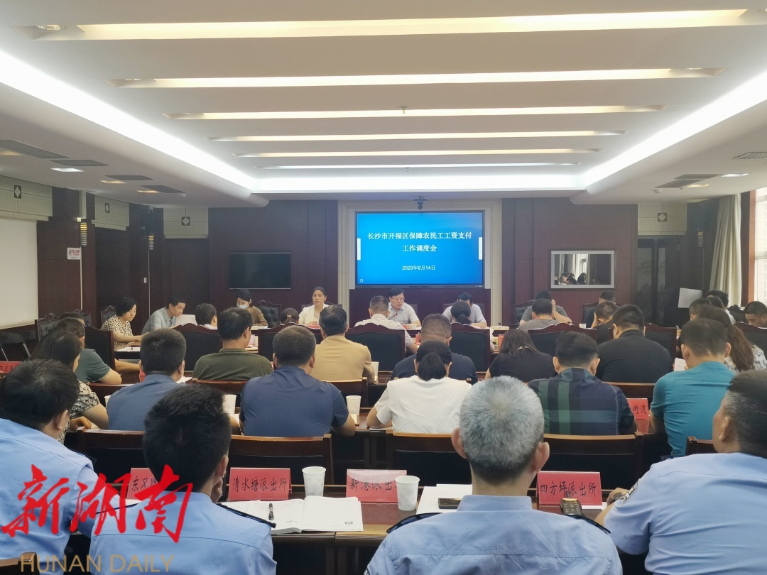 端午节就快到了,农民工工资发放到位了吗? 6月14日上午,长沙市开福区召开保障农民工工资支付工作调度会议,要求各用工企业依法依规发放农民工工资待遇,特别是高风险项目建设单位一定要确保按时足额支付到位。
