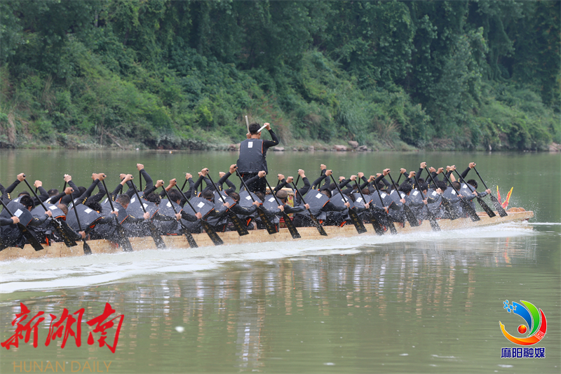 “我们乌龙船最大的特点就是桡子往两边散,素称打雾露,打出来的水花就像落雨以后形成的雾水,非常好看了。”麻阳官村龙船协会会长田小斌介绍,官村村划乌龙船,用桡子打雾露是千年传承下来的习俗。