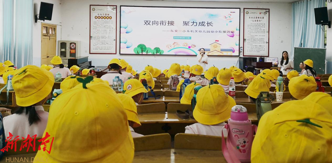 新湖南客户端6月14日讯(通讯员 唐梅兰 周新君 刘虹)为切实推进幼儿园与小学科学有效衔接,实现幼儿从幼儿园到小学的顺利过渡,助力幼儿快乐入学,实现幼儿园和小学教育的双向衔接,6月14日,东安一小和东安机关幼儿园开展“双向衔接 聚力成长”幼小衔接之参观小学活动。