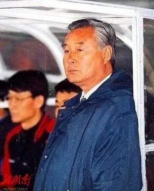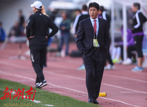 图为:延边长白山队主帅朴泰夏在场边指挥