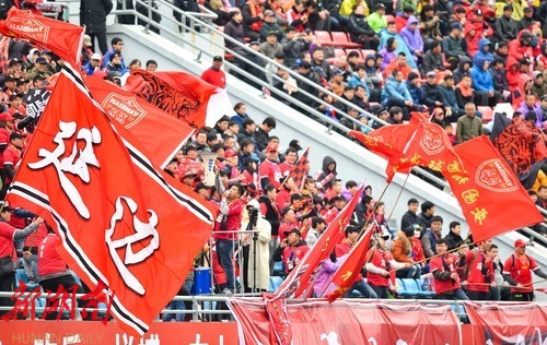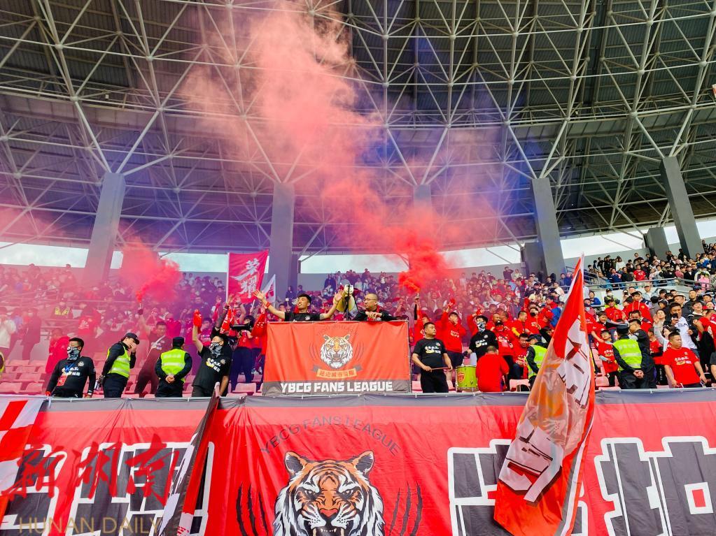 图为:延边龙鼎队在2023赛季中甲联赛主场比赛现场