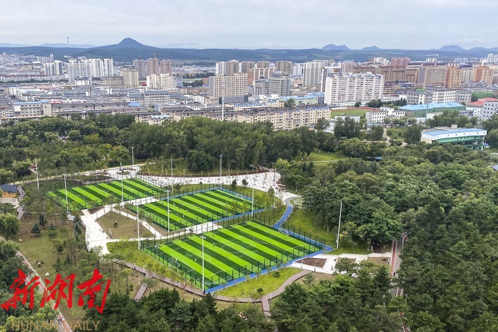 图为:延边朝鲜族自治州延吉市人民公园内的足球场