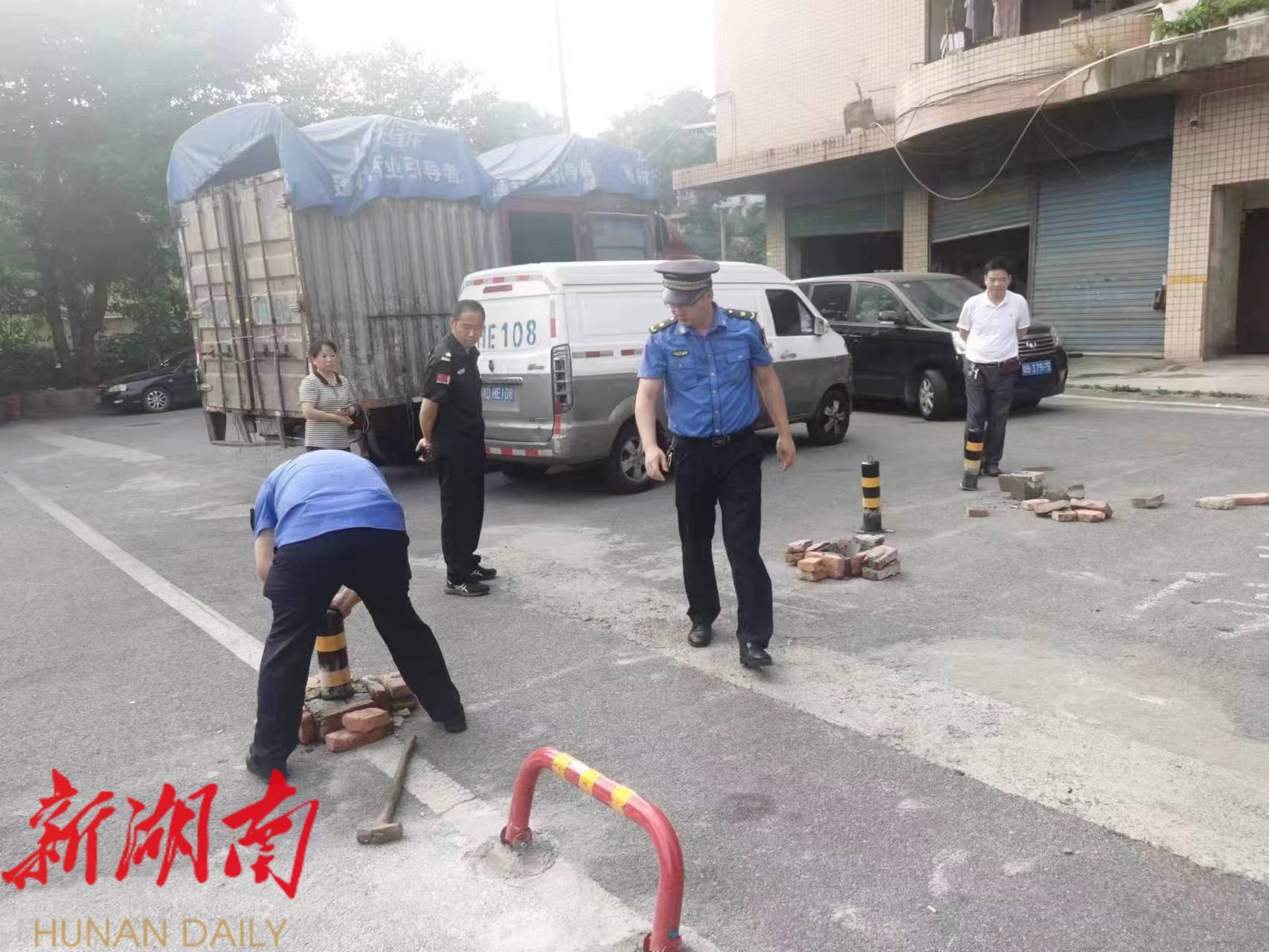 中午11:00,执法队员逐户深入沿街门店开展文明创建宣传,引导商户文明经营、规范经营,自觉抓好“门前三包”。针对车辆乱停乱放、商户利用石墩锥桶占用公共停车位等城市管理“顽瘴痼疾”,执法队员采取加大宣传教育、分类强化巡查、联合集中整治等形式,加强静态车辆管理,规范车辆停放,严厉查处侵占消防通道、人行道等违规停车行为。