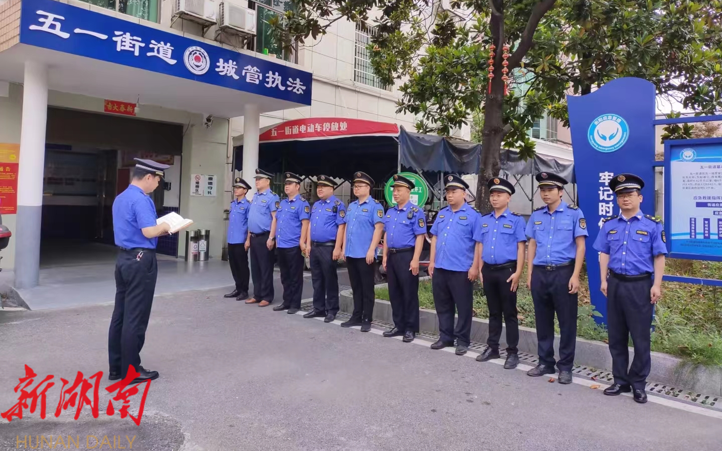 上午8:00,在整队集合后,执法队员迅速到达建设农贸市场、建设新村农贸市场、五一大市场、五一路、望城路等重点区域、重点部位开始了巡查整治工作。规范门店外摆、疏导流动摊点、督查市容卫生、清理城市“牛皮癣”……