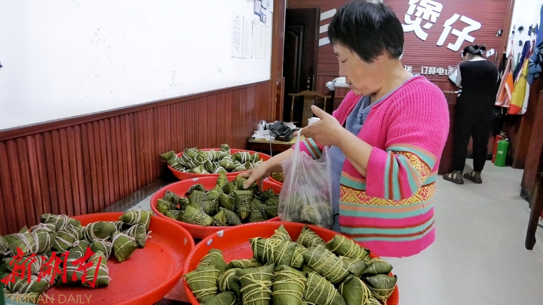 “端午我们做粽子,一年就这一次,平时不忙的情况下,一天差不多800个左右,现在端午就剩一个星期左右了,一天基本上要包1000多个。”