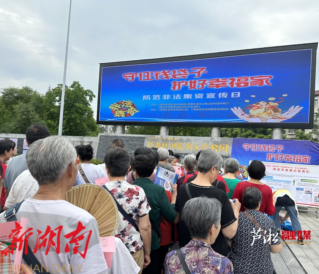 区处非办、区金融办协同成员单位、镇(街道)等,在广场、商场、社区等人员密集地段分设了多个集中宣传点,通过搭建咨询台、摆放宣传展板、张贴海报、悬挂条幅、播放宣教片、发放宣传资料和宣传礼品、以案释法集中宣讲等方式,广覆盖、接地气、多层次地向广大群众讲解《防范和处置非法集资条例》、《湖南省贯彻<防范和处置非法集资条例>实施细则》等法律法规,宣传普及识别非法集资技巧,尤其对利用元宇宙、虚拟货币、数字藏品等新概念的新型非法集资,加强风险预警。