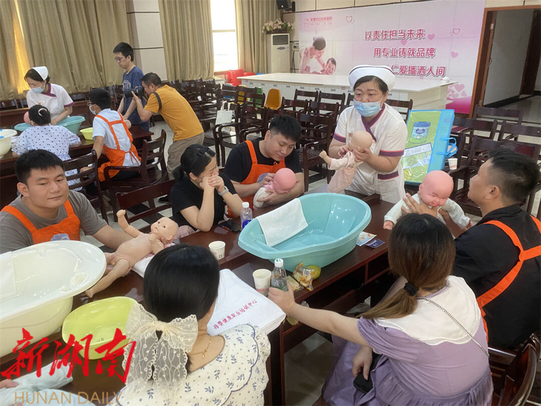 “孕期吃鹅蛋、给新生儿晒太阳是不是可以治黄疸?”“黄疸怎么进行家庭监测?”“婴幼儿生活起居上该注意什么?”活动现场,在舒适放松的waff运动后,常德市妇幼保健院新生儿科副主任、副主任医师杨柳,儿童保健科副主任医师蔡珊珊分别为准爸妈们解读了新生儿黄疸、婴幼儿养育照护的问题。专家们从黄疸产生的原因、症状及治疗方法,到婴幼儿母乳、辅食添加、睡眠、身高体重增长的特点等为准爸妈们进行了细致的科普。除了理论知识,医护人员还为大家面对面展示了新生儿被动操、洗澡、换尿布、抚触等操作技能,并现场邀请准爸妈们参与操作大比拼,新手爸爸们个个伸长脖颈、聚精会神,操作起来也有模有样,气氛热烈而温馨。