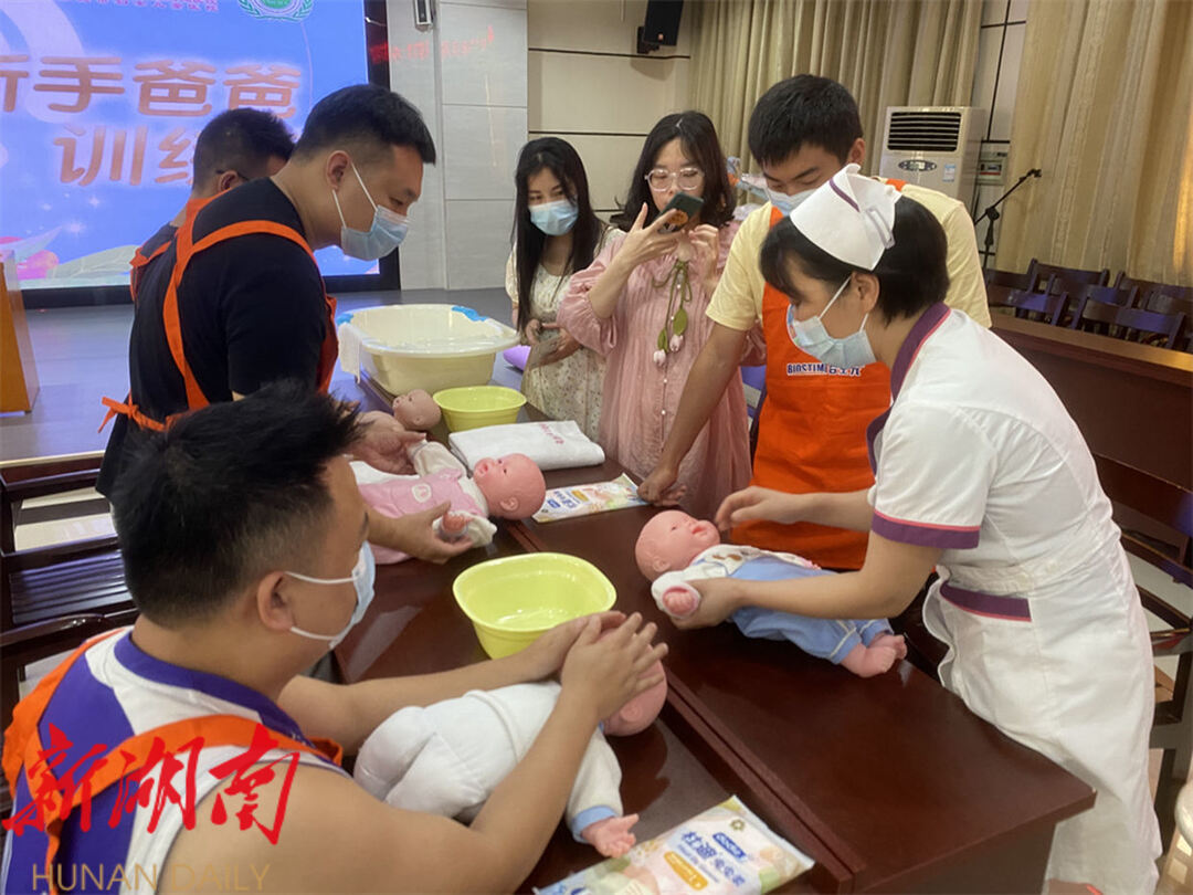 “从今天起,我决心按照新手爸爸守则照看孩子,一日为爸爸,终生是爸爸……”活动结束后,准爸爸们齐声宣誓,不管前面是尿片阵还是便便堆,都将践行奶爸誓言,义无反顾,冲锋在前。医护人员还为准爸爸们颁发了结业证书,凭证书可在常德市妇幼保健院进行一次免费新生儿黄疸监测。