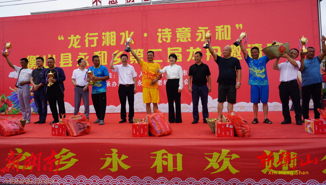 衡山县融媒体中心6月21日讯【记者:廖晶 戴玮】6月21日上午,“龙行湘水·诗意永和”2023衡山县永和乡第二届龙舟邀请赛在永和乡老林村村部举行。来自衡山、衡东两地的14支代表队300余人参赛。县委常委、宣传部部长谷蓉宣布开赛并颁奖,湘雅附二医院教授彭龙开出席并颁奖。