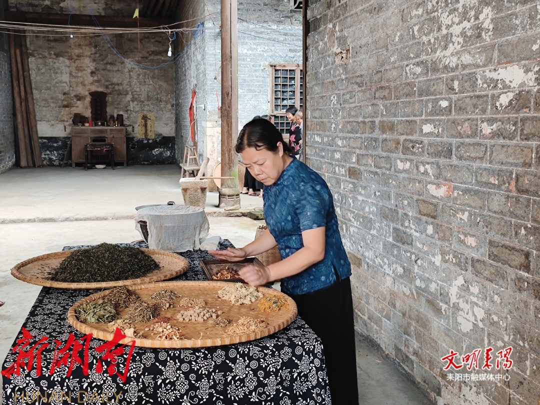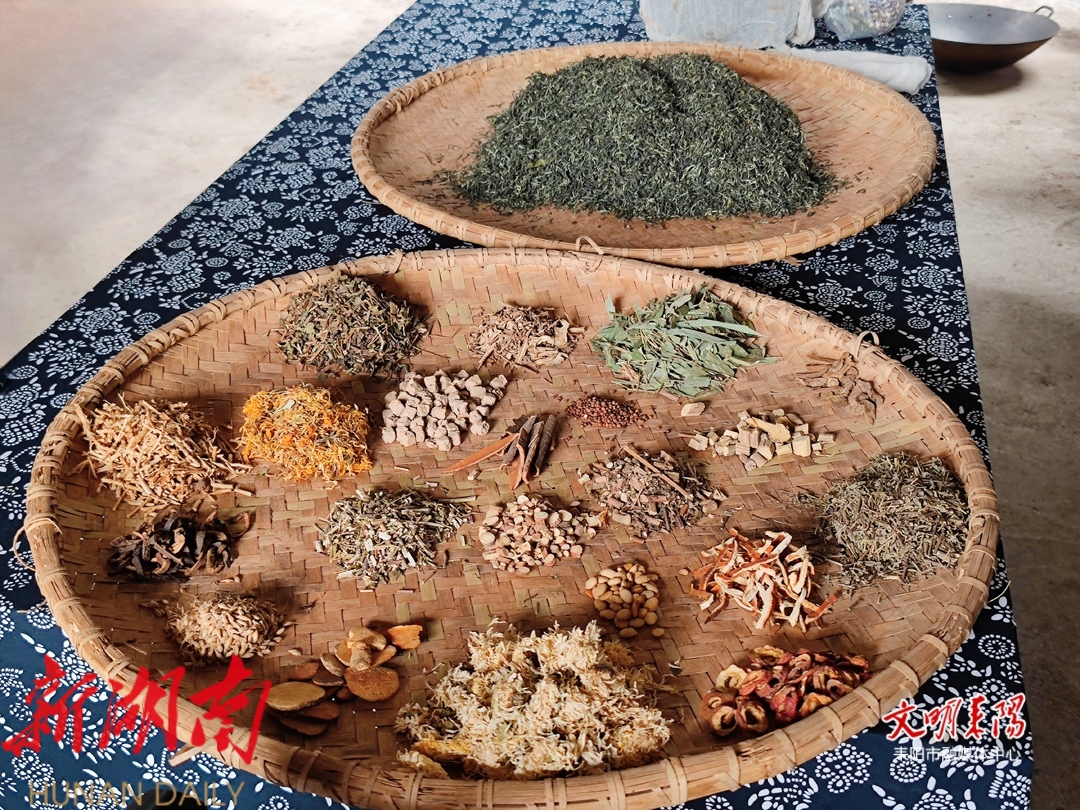 “我们祖祖辈辈沿着耒水两岸居住,湿气、瘴气很重,祖先以茶叶调配中草药材制作午时茶饮用,清热解毒、解表祛湿,逐渐传承下来、流传开来,成为我们千家万户相沿成习、居家必备的茶饮。“村民黄源三介绍。