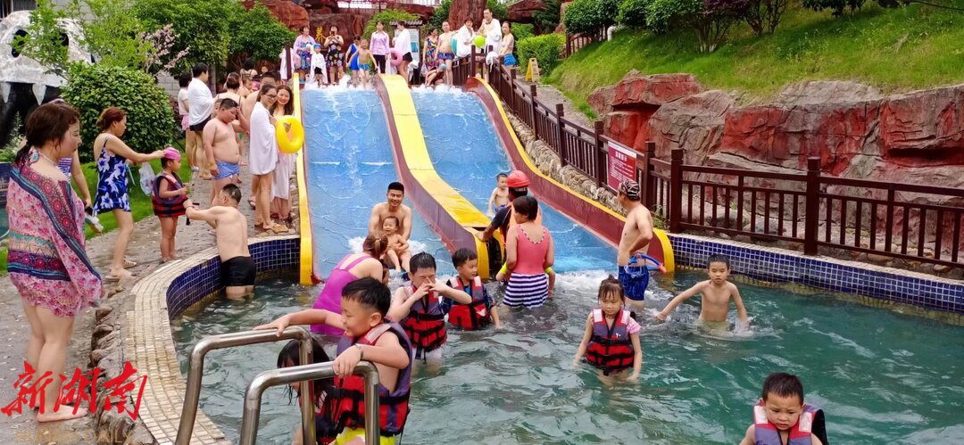 景区还推出了适合夏季的清凉泡浴,有艾叶浴、薄荷浴、金银花浴等,吸引了众多游客来金太阳体验端午民俗,畅玩水上乐园。
