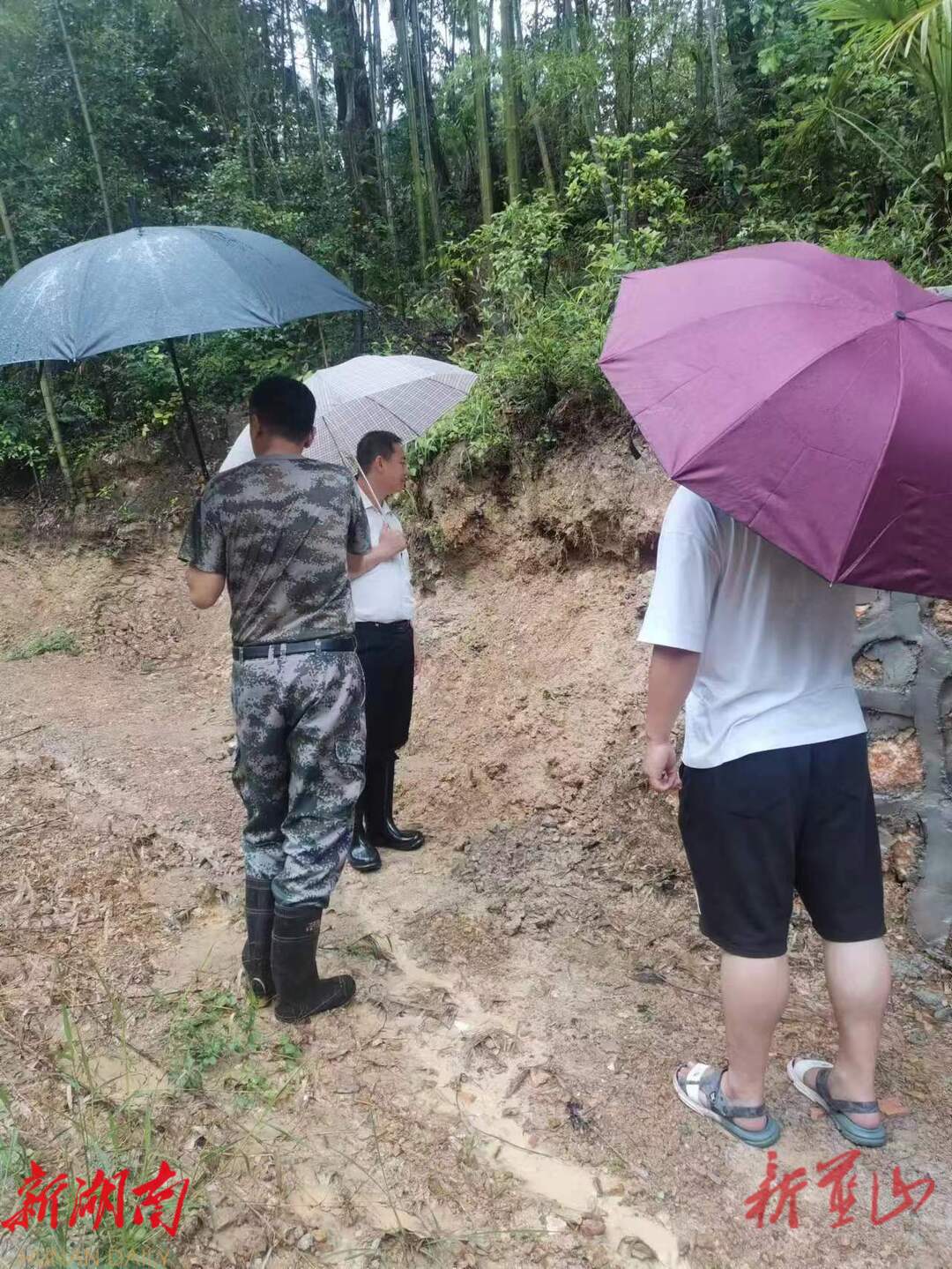 ▲强降雨持续,防汛形势严峻,蓝山县财政局严格落实执行防汛应急值班值守制度和领导在岗带班制度。6月24日,蓝山县财政局相关负责人率队深入荆竹瑶族乡江源村,联合驻村工作队员积极开展防汛救灾工作,对危险路段和区域进行逐一排查,发现隐患及时报告、及时处置。(通讯员 骆兰艺 梁志珩)
