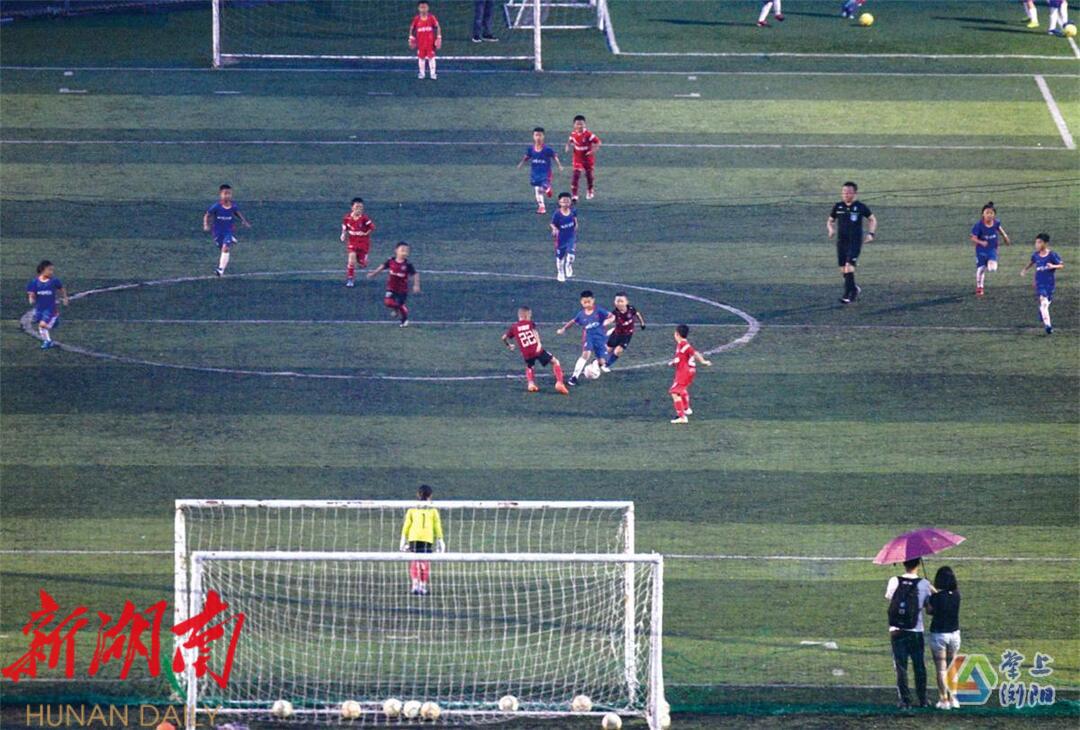 同一时间段,绿茵阳光足球场正在上演“烟花·梦剧场”青少年足球冠军挑战赛——当晚,这里冒雨举行了四场足球比赛,参赛球队分别是来自浏阳本土的江湾腾跃U8、U9、U10三支梯队,以及全国知名球队麓山国际U8队伍、湖南省足球劲旅湘乡湘铝U9、U10队伍和郴州盛和U10队,吸引了数百人在雨中感受“烟花+足球”的独有浪漫。