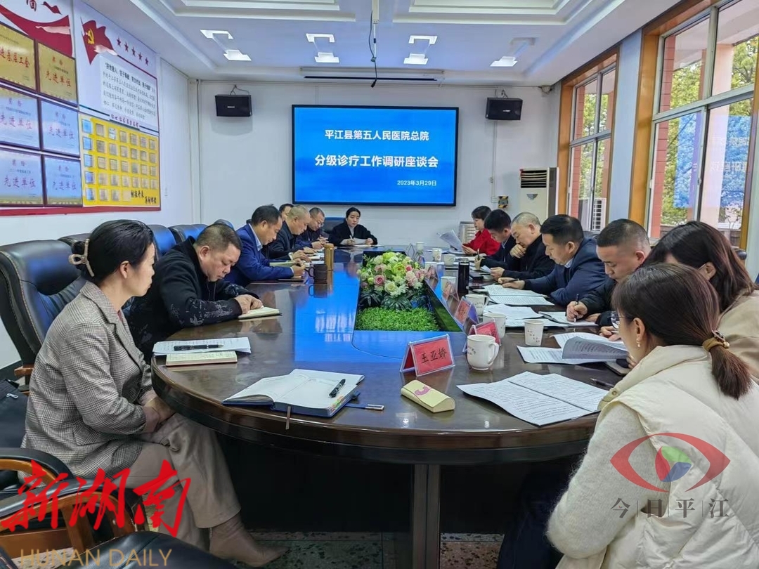 (在平江县第五人民医院调研)