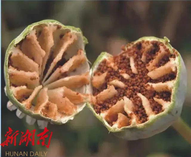 罂粟花脱落后十余天,结出蛋型蒴果,在成熟蒴果上切割,可以渗出白色浆汁,干燥后变成棕褐色