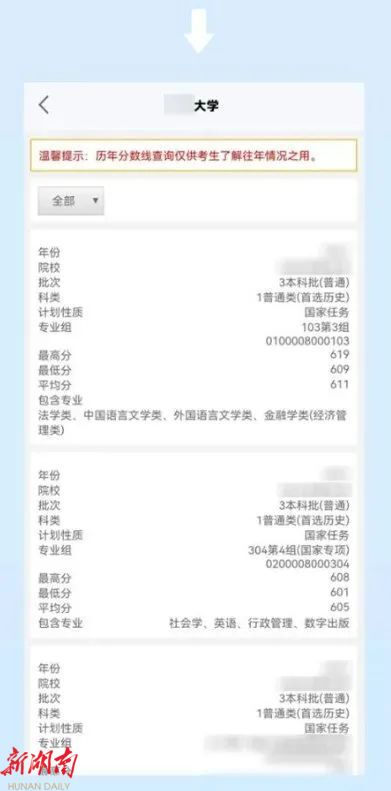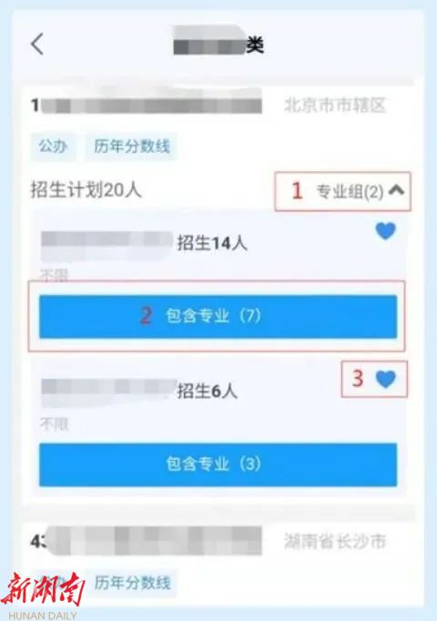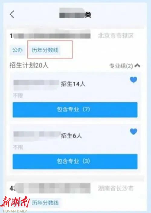 1、查看高校招生计划与历年录取分数情况并收藏有意向的院校专业组。