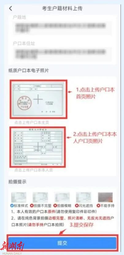 准备填报公安院校的公安专业、省内公费师范生、农村订单定向医学生、农技特岗生、林业特岗生、水利特岗生、基层医疗卫生机构本土化专科层次人才培养招生等有户籍要求的提前批院校志愿的考生,需要通过此功能上传户口本首页(含地址信息)与本人页照片。