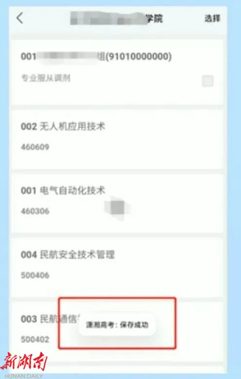 操作成功后,会出现“潇湘高考:保存成功”提示信息。