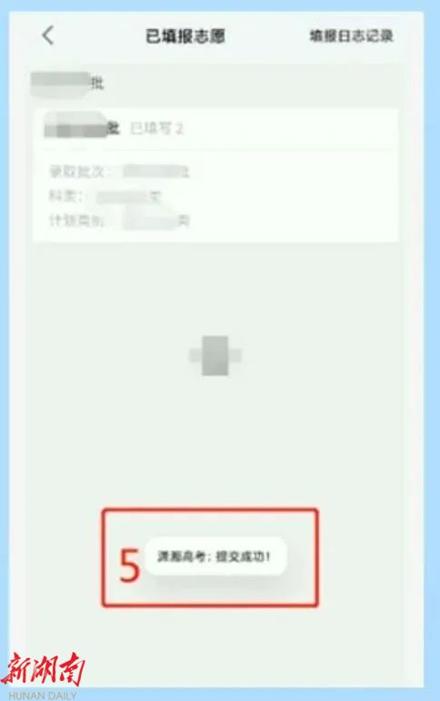 操作成功后,会出现“潇湘高考:提交成功!”提示信息。