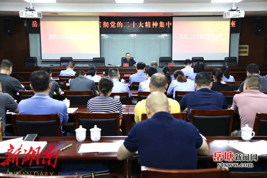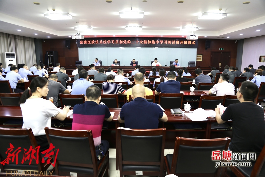 岳塘新闻网 6月28日讯 (记者 康艳)为深入学习贯彻党的二十大精神,切实把全区政法系统队伍的思想和行动统一到党的二十大精神上来,6月28日,岳塘区政法系统学习贯彻党的二十大精神集中学习研讨班开班。区委常委、政法委书记李辉出席并作开班动员讲话,副区长、岳塘公安分局局长谭力主持会议,岳塘区人民法院院长崔卫斌,岳塘区人民检察院检察长何永红,岳塘公安分局政委马家安参加。