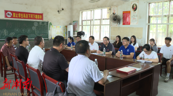 新洞口客户端6月29号讯(记者:王周鹏 王颖蓓) 6月29日,湖南科技大学驻永发完小研究生支教团汇报总结会在黄桥镇永发完小举行,湖南科技大学研究生院院长、党委研究生工作部部长李海萍出席会议,湖南科技大学党委组织部组织员廖巍主持会议,湖南科技大学教育学院副院长陈京军,湖南科技大学研究生院副院长唐志光,黄桥镇党委政府、永发完小相关负责人,永发村两委、驻村工作队和支教团全体成员参加会议。