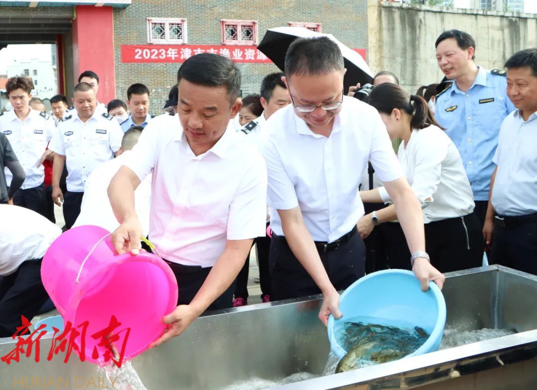 6月29日,我市举行2023年澧水鱼类人工增殖放流、护渔员装备配发、非法捕捞渔具集中销毁活动。市委书记黄旭峰,市委副书记、市长彭子晟参加活动。