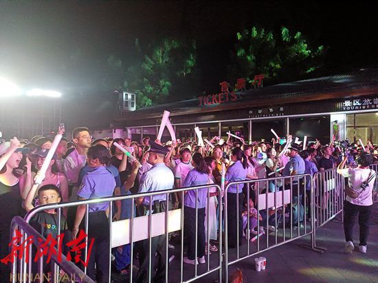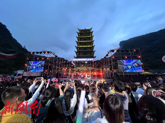 湖南日报·新湖南客户端 7月1日讯(记者 龚文婷)7月1日晚,2023武陵源嘀格儿音乐节在张家界武陵源标志门广场(张家界国家森林公园东门)激情开唱!这场大型音乐演出活动,吸引了大批市民、游客前来驻足观赏。