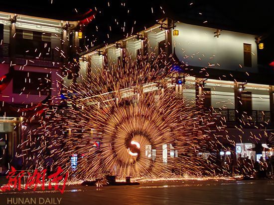现场观众热情地挥舞手中的荧光棒,热情跟唱着《花房姑娘》《海阔天空》……一首首经典歌曲乘着夏日晚风动情演绎,博得现场观众阵阵掌声。最后,绚烂的铁花焰火表演点亮了武陵源的夏夜,更是将观众的欢呼推向最高潮,大家纷纷掏出手机定格美好瞬间。“音乐节演出满足年轻人的喜好,非遗演出又很有传承意义,这一次,张家界真的很浪漫。”市民潘女士如是说。