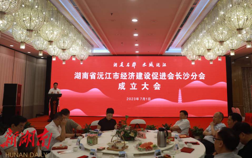 新沅江客户端7月3日讯 (记者 黄曦 张晨霖)7月1日,沅江市经促会长沙分会成立大会在长沙通程国际大酒店隆重举行。省人大常委会原副主任肖雅瑜、王柯敏,省政协原副主席刘晓,省政协原秘书长卿渐伟,武警湖南总队原副司令员李德安,家润多商业股份有限公司董事长胡子敬出席并担任长沙经促分会第一届顾问。沅江市委书记杨智勇致辞;市委副书记、市长罗必胜介绍了沅江经济社会发展情况;市委副书记候耀森出席大会;市政协主席刘武宣读了长沙经促会分会第一届组织机构的批复。市委常委、市委办主任周军,副市长吴限忠,市政协副主席徐鄂春、汪交龙,高新区党工委书记李选才,及在长沙的沅江籍上市公司企业家、社会各界沅江老乡代表共100多人,欢聚一堂,共同见证长沙分会成立。湖南省地方金融监管局原党组副书记、副主任、一级巡视员张立东担任长沙经促分会第一届理事长并发言,长沙天一平安文化传播有限公司董事长李建平担任长沙经促分会第一届秘书长并作表态发言。