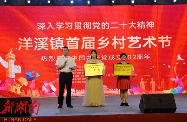 湖南日报·新湖南客户端7月3日讯(通讯员 杨尚勤 曾湘涛)6月30日晚,由正坤房地产开发有限公司冠名的洋溪镇2023年度首届乡村艺术节在洋溪镇锦绣文昌精彩上演,庆祝中国共产党成立102周年,深入学习贯彻党的二十大精神, 进一步激发洋溪人民奋进新时代的精神风貌,强化人居环境整治建设,以文化艺术助力乡村振兴。副县长罗轶民宣布活动开始,洋溪镇党委书记伍禄军致欢迎词,县文明办、县融媒体中心、正坤地产等相关部门、企业和洋溪镇党政班子成员、部门站所负责同志参加。