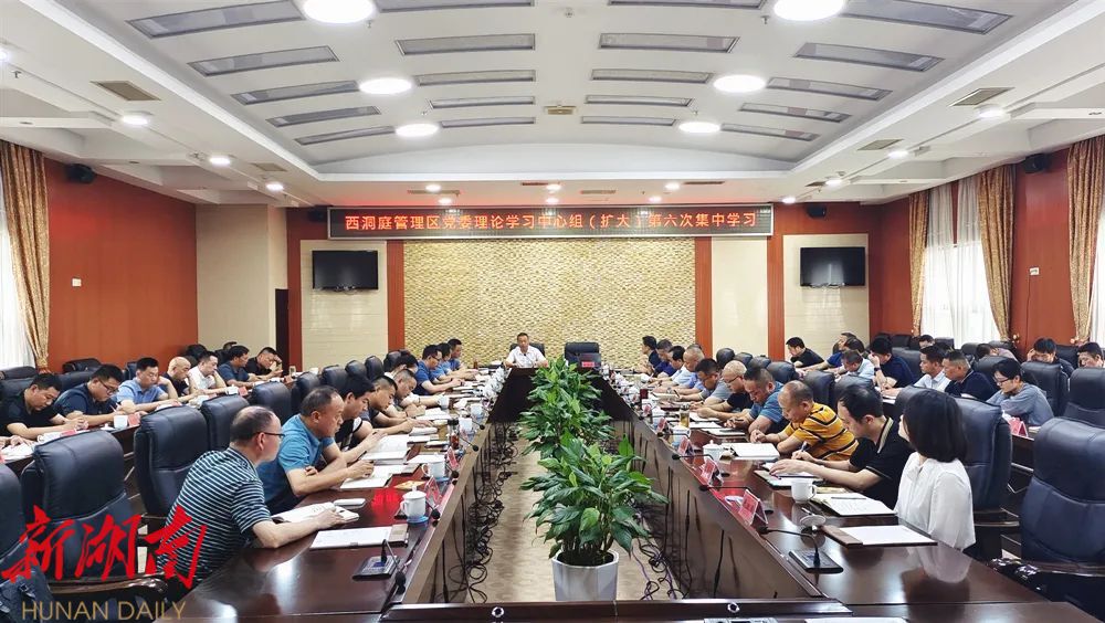 6月30日上午,2023年西洞庭管理区党委理论学习中心组(扩大)第六次集中学习在鑫湖缘九楼会议室召开,区党委书记刘爱军主持会议并讲话,全体在家区领导出席会议。