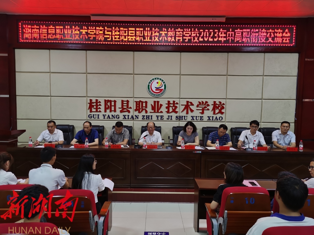新桂阳7月3日讯(记者 周立志 ) 6 月 30 日,湖南信息职业技术学院院长陈剑旄一行来我县职业技术教育学校开展 2023 年中高职衔接交流。