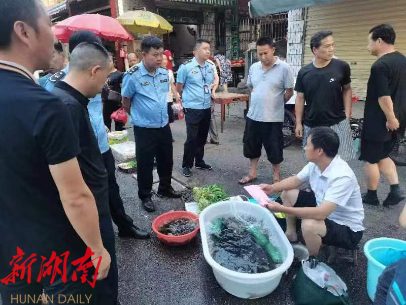 湖南日报·新湖南客户端7月6日讯 (通讯员 江满平 唐文高 杨志桂 )7月6日凌晨,芷江多部门联合赴县城各农贸市场,开展禁售野生鱼集中宣传周活动。