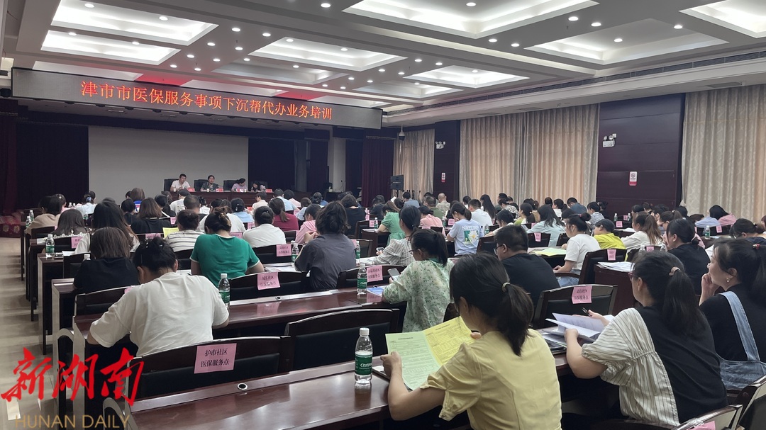 会上,市医保局相关负责人宣读了《津市市医保经办服务基层站(点)建设实施方案》、《津市市医保经办业务练兵比武工作方案》。各镇、街进行了表态发言。随后,市医保局行政服务大厅、数据信息股、待遇股负责人分别对医保下沉服务事项办事指南及平台操作、激活电子医保凭证操作、医保相关政策进行培训。