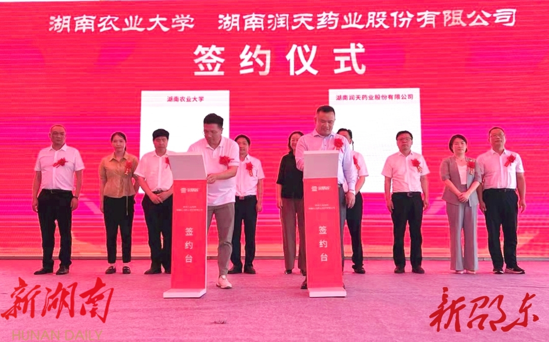 投产暨揭牌仪式上,湖南润天药业股份有限公司还与湖南农业大学食品科学技术学院签订了校企合作战略协议。