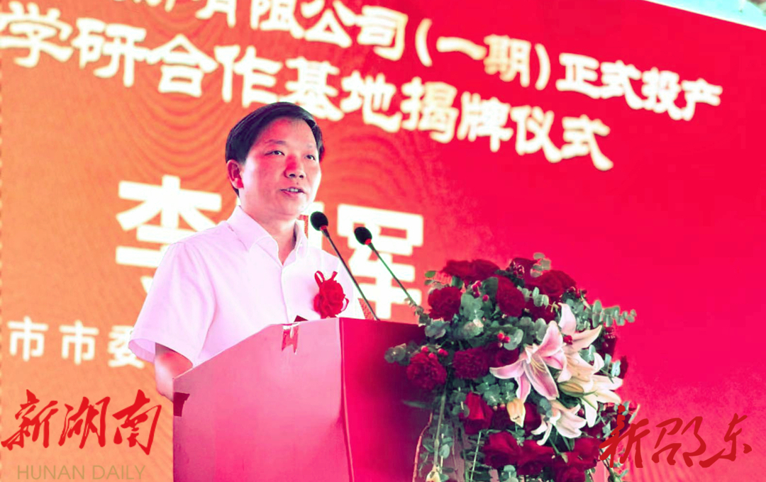 邵东市委副书记、市长李国军在投产暨揭牌仪式上致辞。李国军希望,润天药业要以一期项目正式投产为新起点,更加深度融入邵东中药材产业发展战略,携手业界领先的合作伙伴投资邵东、深耕邵东;各有关职能部门要牢固树立“以企业为中心”“以企业家为中心”“以人才为中心”的理念,把企业家当家人,把企业事当家事,各尽所能,主动服务,排忧解难,全力扶持润天药业和产学研合作基地发展壮大。同时,李国军希望湖南农业大学为邵东中药材产业的创新研发提供更多的智力支撑,着力攻克一批技术难关,提升邵东中药材产业的“含金量”“含新量”,全面实现合作共赢。