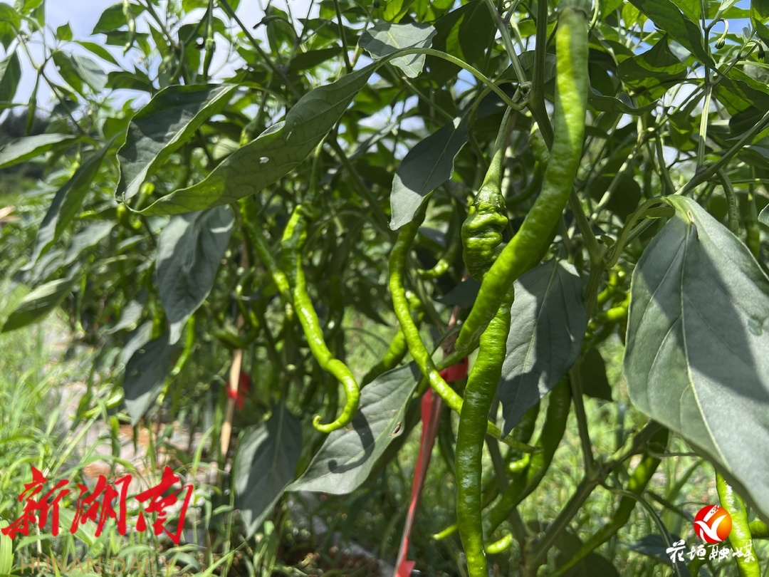 盛夏时节,位于长乐乡纳吾车村的花垣县永正现代家庭农场辣椒种植基地里,一垄垄辣椒树郁郁葱葱,个大饱满的螺丝椒挂满枝头。