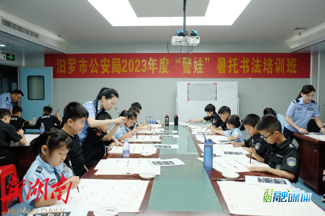 湖南日报·新湖南客户端7月6日讯(通讯员 胥扬)暑期如何防溺水?软笔、硬笔有哪些讲究?怎样做出小手工……7月6日上午,汨罗市公安局第三期警娃暑托班、特色书法班正式开班,206名“警娃”在老师们的带领下,学得专心、玩得开心,也让警爸警妈们放心,处处洋溢着轻松快乐。