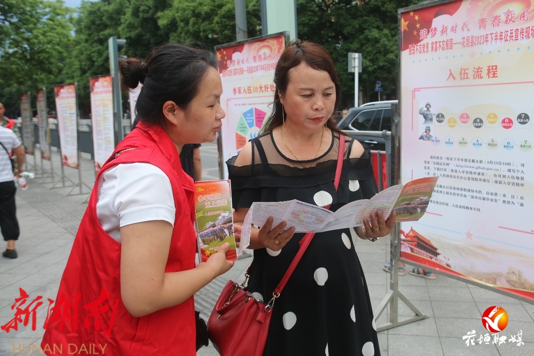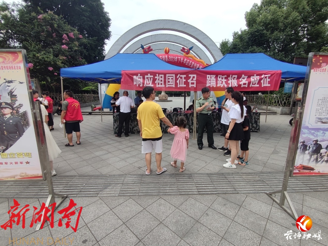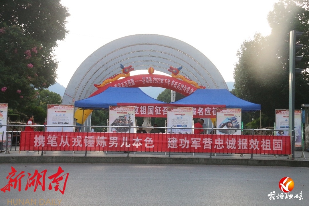 为吸引更多高素质青年参军入伍,让入伍优惠政策惠及更多青年及家庭,7月7日,花垣县2023年下半年征兵宣传现场报名活动在边城广场举行。