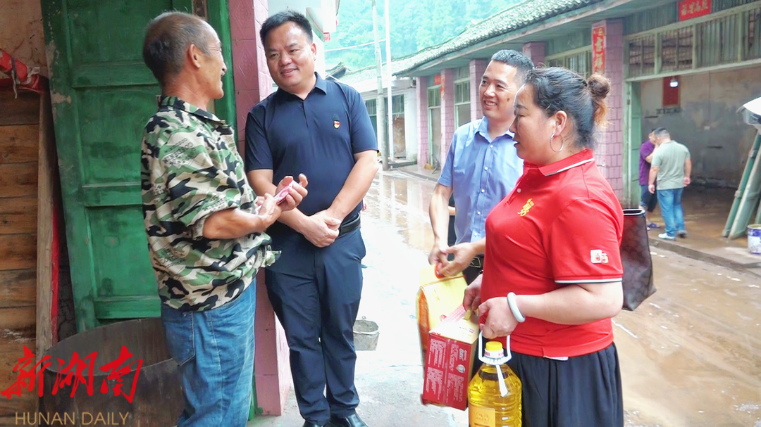 新湖南客户端7月8日讯(记者 向朝霞)7月8日,长沙市古丈商会及湘西神泉商贸有限责任公司来到古丈县开展抗洪救灾捐赠慰问活动,古丈县委常委、县委统战部部长向上,县政协副主席、县工商联主席詹光寅出席捐赠仪式,长沙市古丈商会会长张仕康一行、湘西神泉商贸有限责任公司总经理田玉花出席捐赠仪式并到岩头寨镇草塘村慰问受灾群众,县委统战部、县工商联、各镇相关负责人参加本次活动。