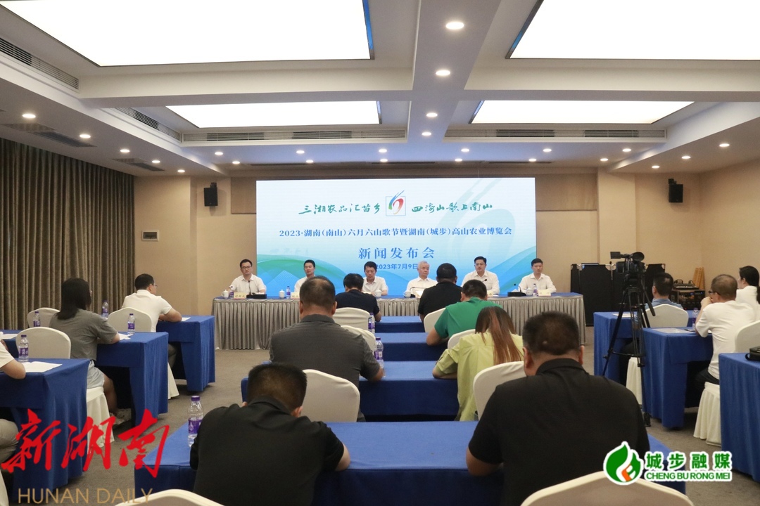 新城步客户端7月9日讯(记者 王蕾婷) 7月9日,湖南(南山)六月六山歌节暨湖南(城步)高山农业博览会新闻发布会在长沙举行,邵阳市人民政府副市长蒋伟代表活动组委会向与会媒体记者通报了活动相关情况。 记者在现场了解到,2023·湖南(南山)六月六山歌节暨湖南(城步)高山农业博览会将于7月23日(农历六月初六)至30日在城步举行,其中开幕式及文艺晚会23日晚上举行。